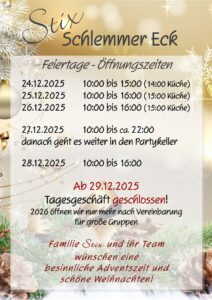 Liebe Gäste, liebe Freunde vom STIX Schlemmer Eck,